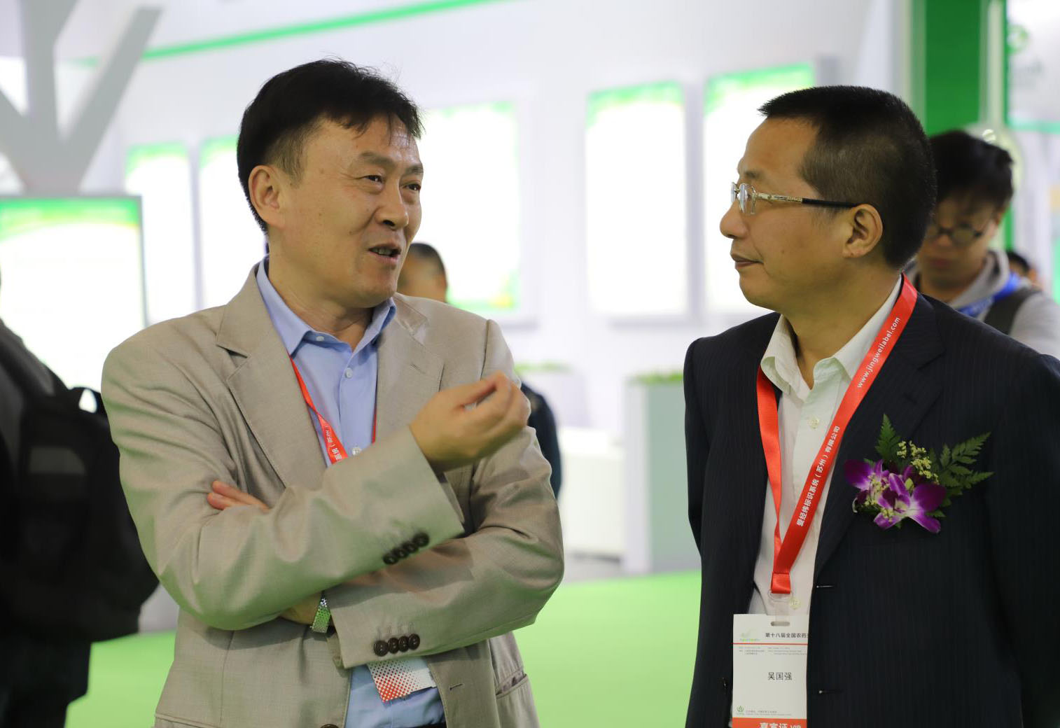 展臺(tái)上薛總與農(nóng)業(yè)部農(nóng)藥檢定所黨委書記吳國(guó)強(qiáng)親切交談
