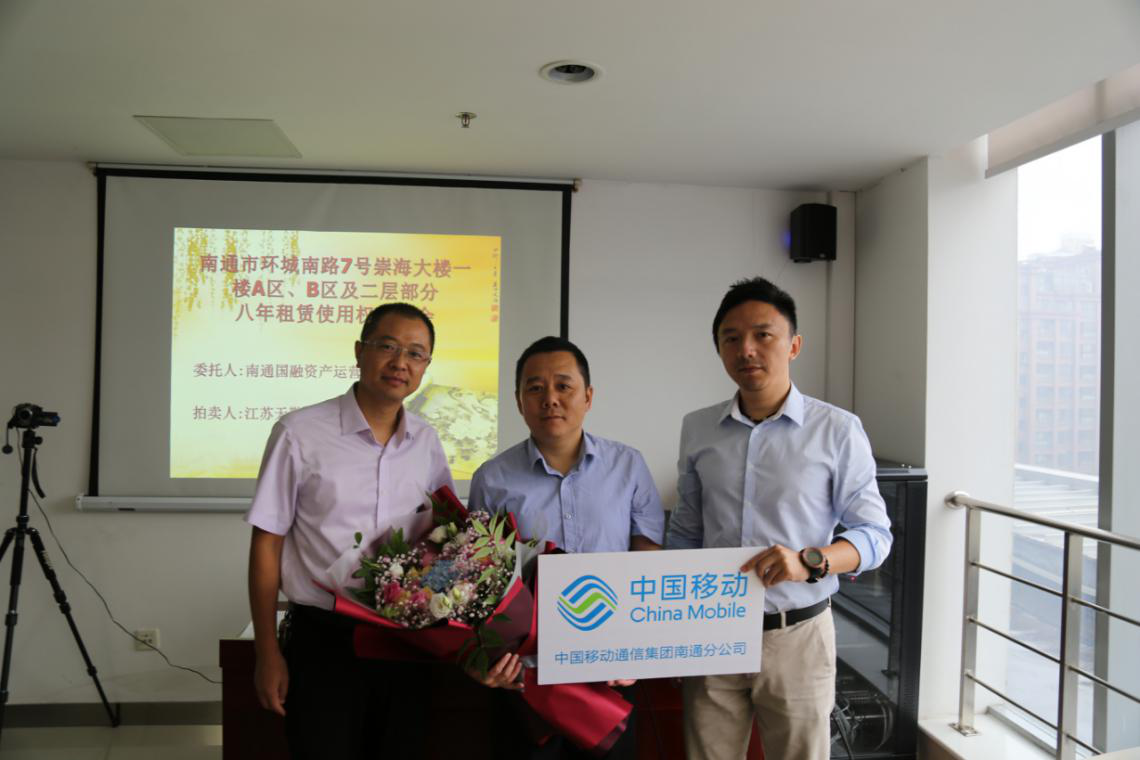 在宣讀了房屋租賃使用權拍賣的特別規(guī)定等文件并確認各競租人無異議后,現(xiàn)場監(jiān)拍人遞交了本場拍賣會的底價函。經(jīng)拍租,中國移動通信集團江蘇有限公司南通分公司代理人、張家港保稅區(qū)佑福珠寶貿(mào)易有限公司代理人分別拍中崇海大樓A區(qū)八年租賃使用權、B區(qū)八年租賃使用權,并簽署了成交確認書,成交年租金合計達620萬元,八年租金總額達4960萬元。公司領導代表公司向房屋競租人遞送了鮮花表達祝賀并合影留念。統(tǒng)一規(guī)劃,統(tǒng)一布局,統(tǒng)一招租,統(tǒng)一競租,國融公司充分挖掘崇海大樓優(yōu)越的商業(yè)地段和濃厚的商業(yè)氛圍優(yōu)勢,轉化為優(yōu)良、持久、高效的經(jīng)營收益,實現(xiàn)了該處資產(chǎn)科學升值。公司將以崇海大樓成功招租的經(jīng)驗為借鑒,繼續(xù)做好所管理國有資產(chǎn)的升級改造,切實履行好國有資產(chǎn)保值增值的職責,推動企業(yè)的高質量發(fā)展。