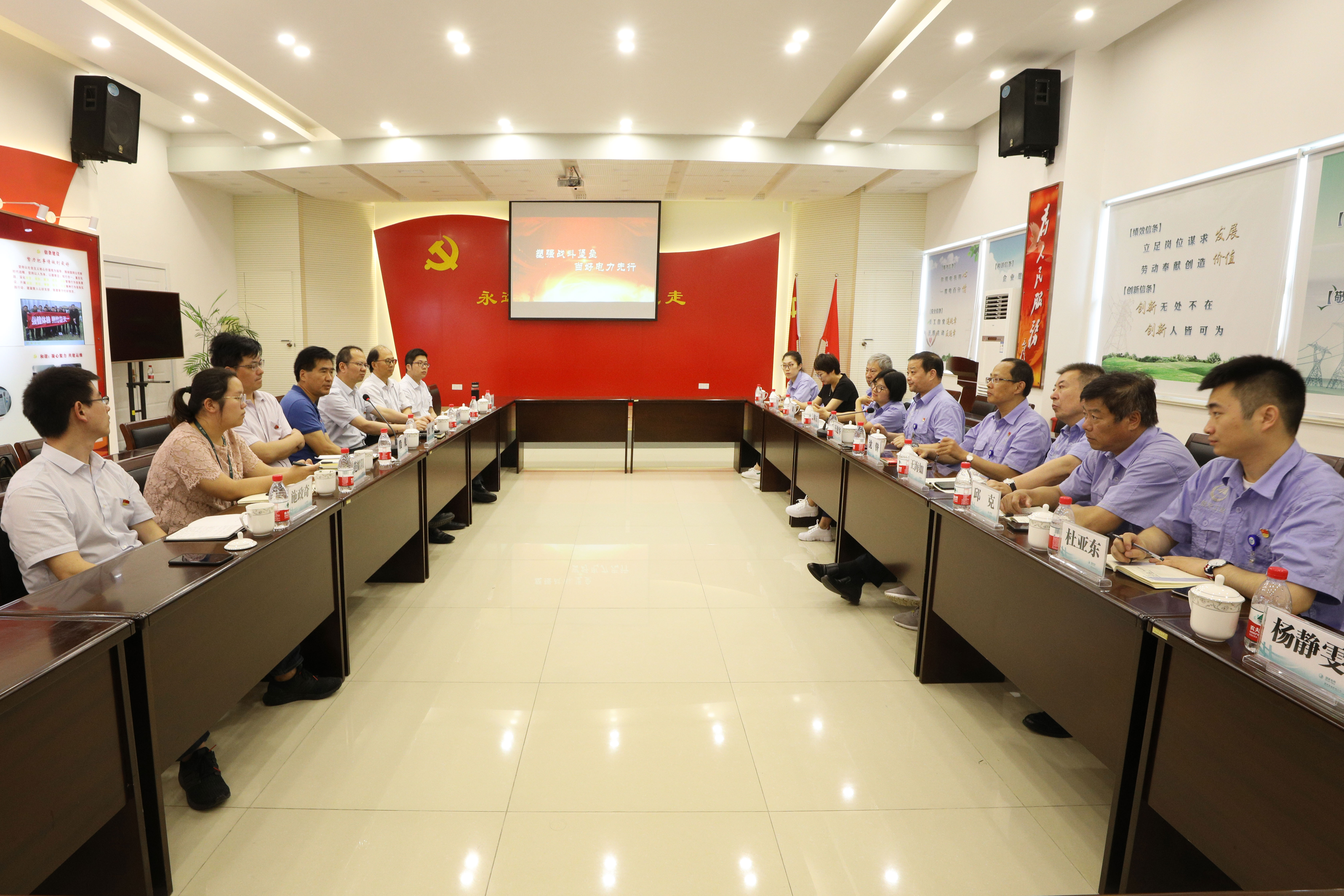 座談過程中,雙方還就如何把堅(jiān)持和加強(qiáng)國有企業(yè)黨的全面領(lǐng)導(dǎo),弘揚(yáng)“支部建在連上”的光榮傳統(tǒng),進(jìn)行了廣泛的交流、探討,一致表示今后要結(jié)為友好單位,多渠道加強(qiáng)黨建工作學(xué)習(xí)交流,共建共贏,共同進(jìn)步。 7月17日,王建華帶領(lǐng)公司各直屬直管單位黨組織書記、黨群紀(jì)檢部工作人員組成學(xué)習(xí)組赴南通供電公司、南通天生港發(fā)電有限公司兩家黨建工作優(yōu)秀單位,學(xué)習(xí)交流黨建工作經(jīng)驗(yàn),紀(jì)委書記沈鋒一同參加。