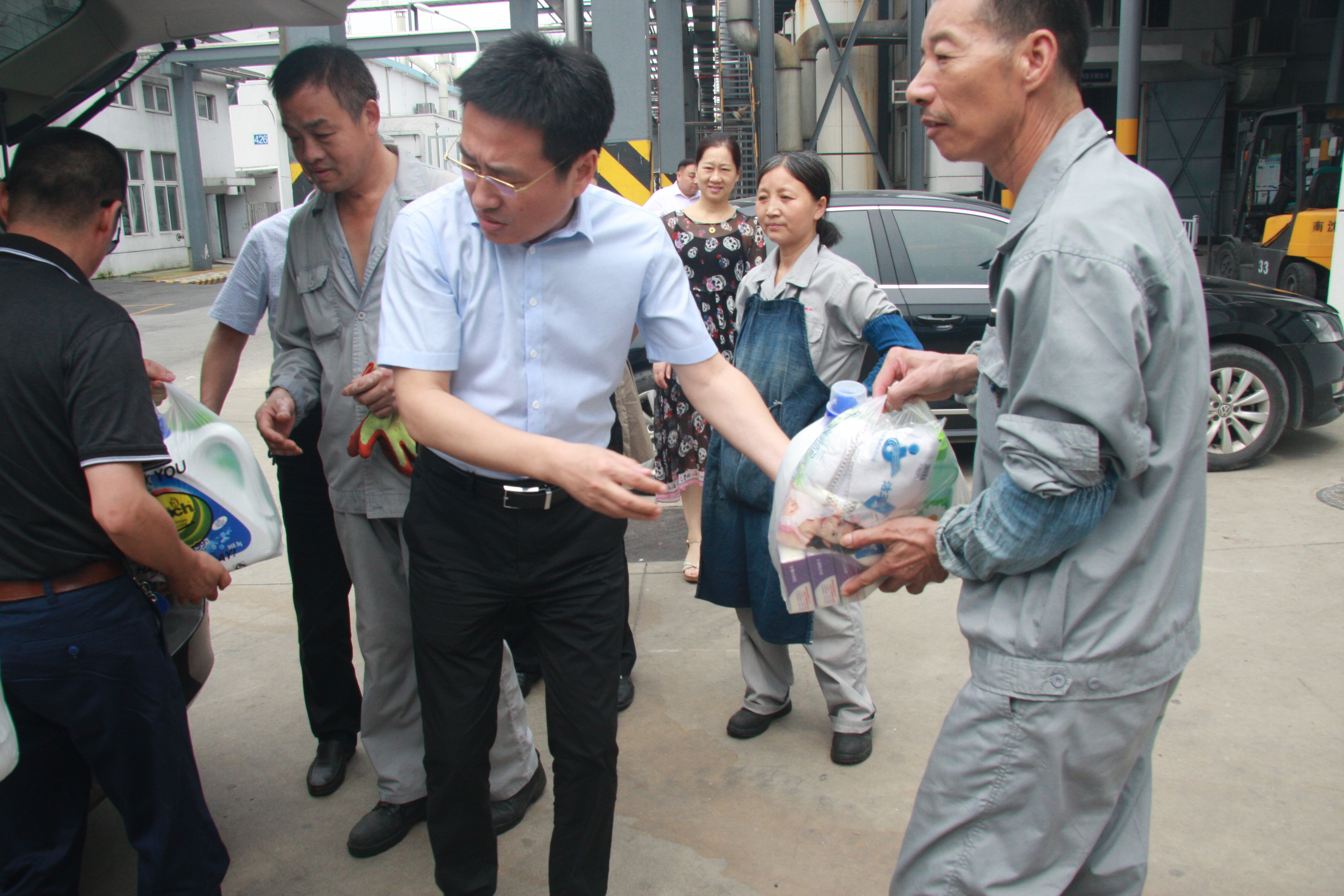 慰問組一行先后到江山農(nóng)化生產(chǎn)車間、興盛木業(yè)制造廠房、以及公司管理的三個(gè)園區(qū):軟件園、飛越百度文化廣場(chǎng)、石化園區(qū),分別給一線生產(chǎn)車間職工、園區(qū)一線工作人員送去防暑用品,并詳細(xì)了解了一線職工工作環(huán)境和生活情況,對(duì)他們辛勤的付出表示感謝,叮囑大家在做好工作的同時(shí),一定要注意防暑,確保安全,保重身體。
